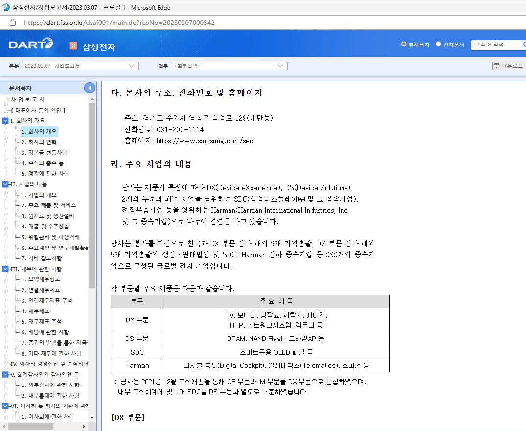 직원수:XXX명 / 매출액:XXX 억 원(XX연말 기준) -> 직원수 및 매출액 또한 사업보고서를 참고합니다.